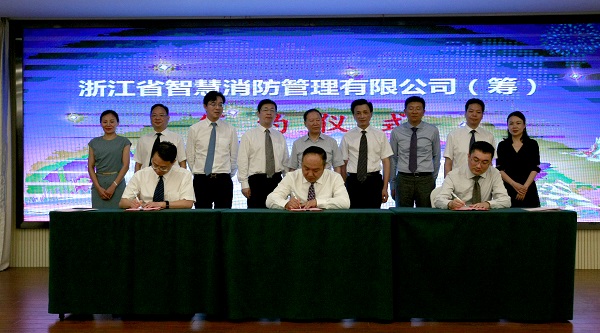 8 月 13 日上午,浙江省智慧消防管理有限公司(筹)成立仪式在杭州举行,省国资委副主任沈建平,以及南消股份、杭州钢铁集团、浙江省数据管理有限公司有关领导出席了签约仪式。集团党委书记、董事长吴高峻,党委副书记、总经理诸葛斌出席活动并致辞,党委副书记余兴才等相关领导参加了本次活动。