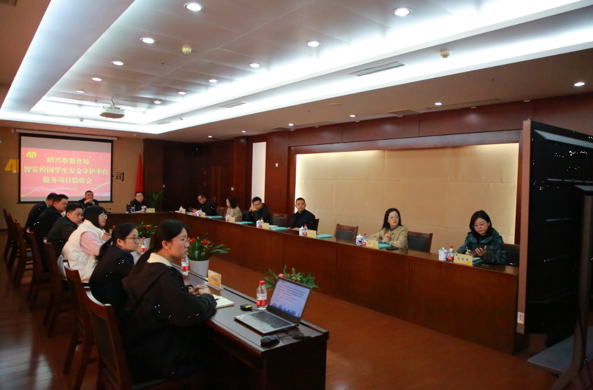 11月26日,绍兴市智安校园学生安全守护平台服务项目验收会在绍兴星辉游戏召开,市教育局基教处(安监处)处长罗立新,副处长钱强,部分市直学校安全分管领导及有关专家参加会议,公司党委副书记、总经理汤华虎出席会议,相关部门负责人参加会议。