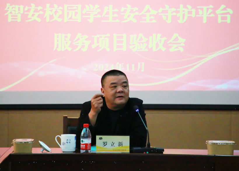 汤华虎对参加验收会的市教育局领导和专家表示热烈欢迎,并对学生安全守护平台在市域内的整体运行情况做了简要汇报。