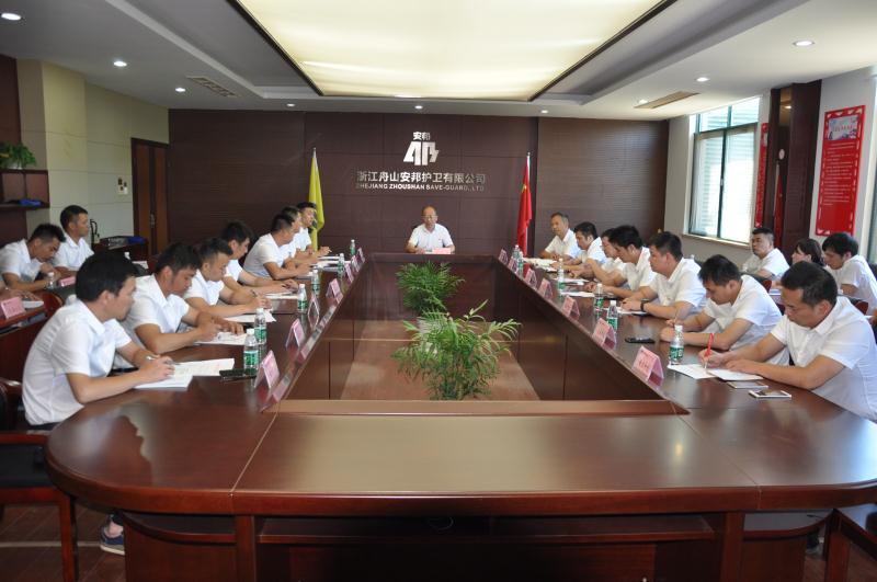 8月12日,集团公司半年度工作会议精神传达会在公司二楼会议室召开,会议由公司党委书记、董事长、总经理茹新奋主持,公司领导及各部门、各守押大(中)队负责人参加了会议。