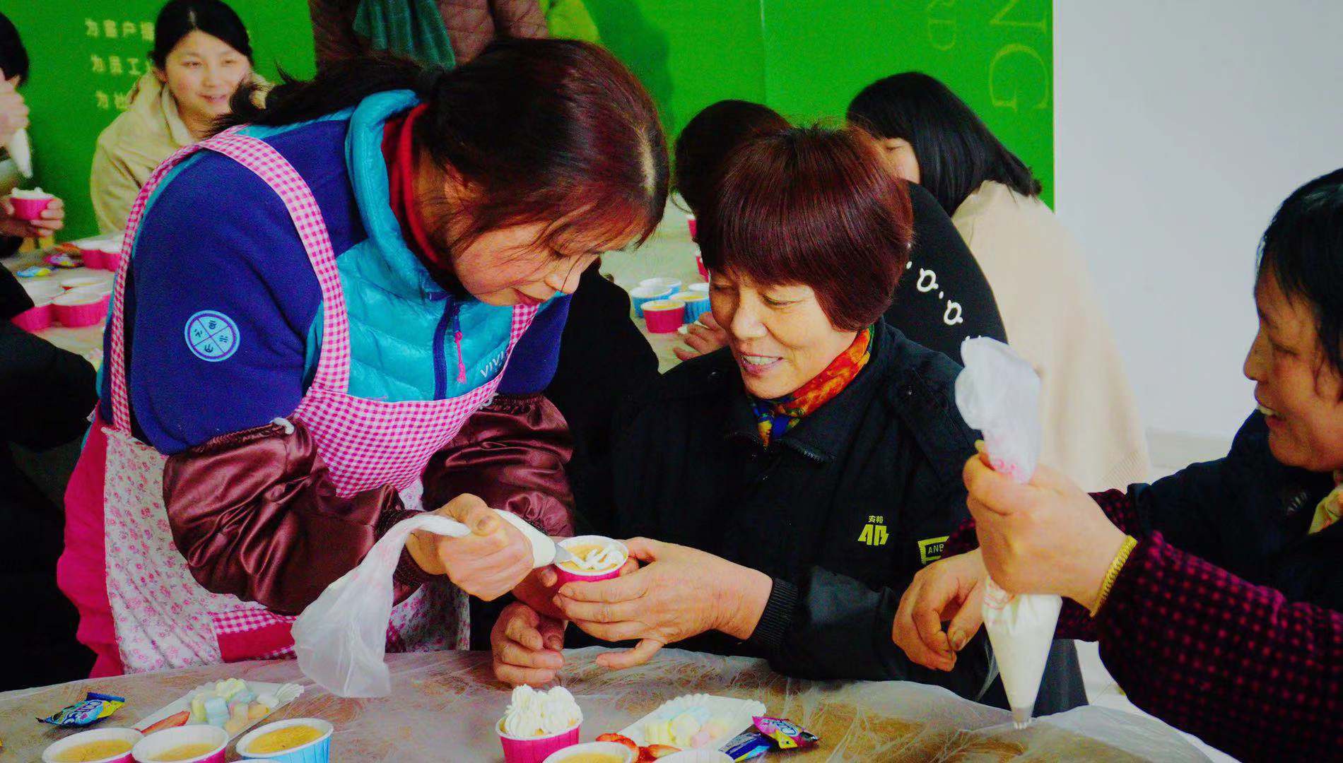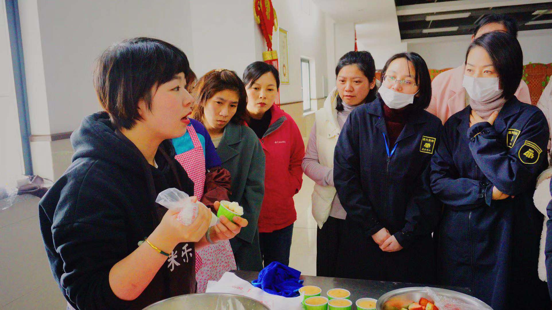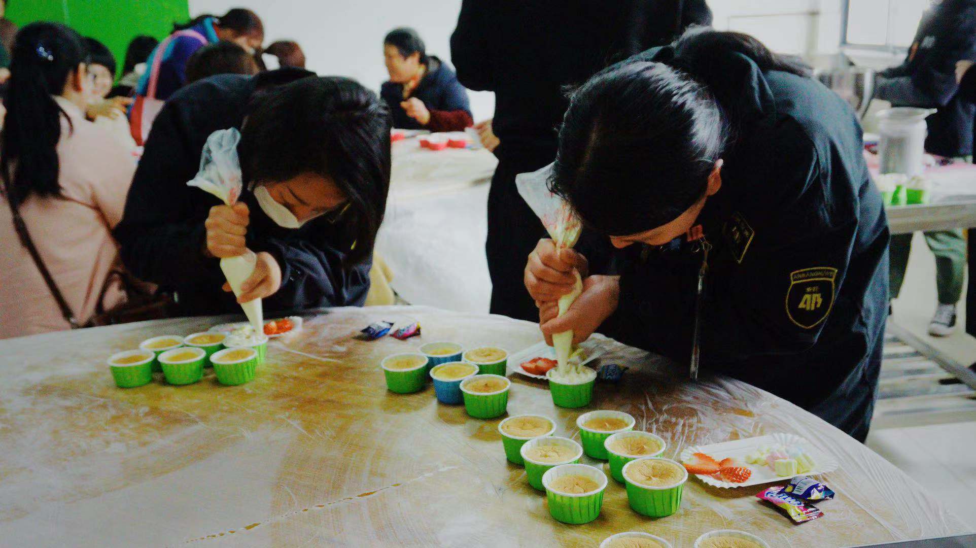 现场氛围十分火热,在专业老师的现场指导下,女职工们各显身手,自己动手为纸杯蛋糕裱上香甜的奶油。