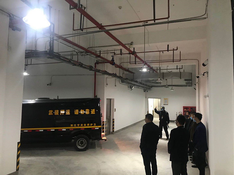 宁海基地金库建设历时半年,经过勘察选址、项目审报、改造建设、设备调试等环节,于今年2月正式通过公安、质检等单位检查验收,取得了合格证、安全许可证等资质,达到金库运营条件。