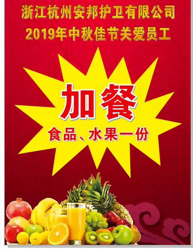 中秋节当日,公司后勤保障部将在各基地食堂准备中秋食品和水果,当天上班的所有员工都可以免费领取。同时,当天食堂的菜肴样式丰富。(提前剧透下,当天会有牛腩、油爆虾......)