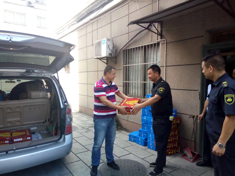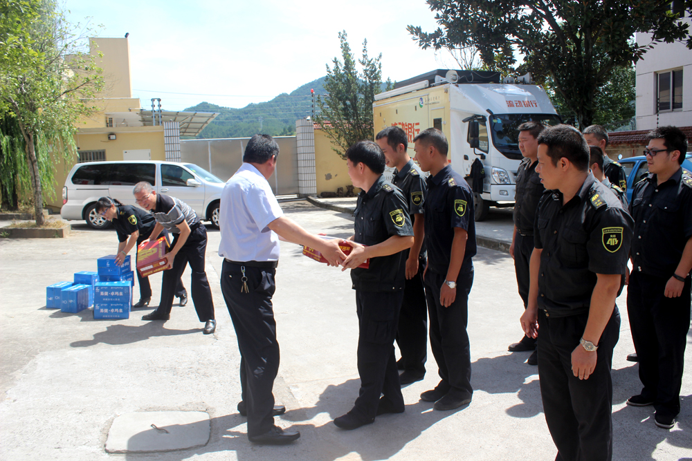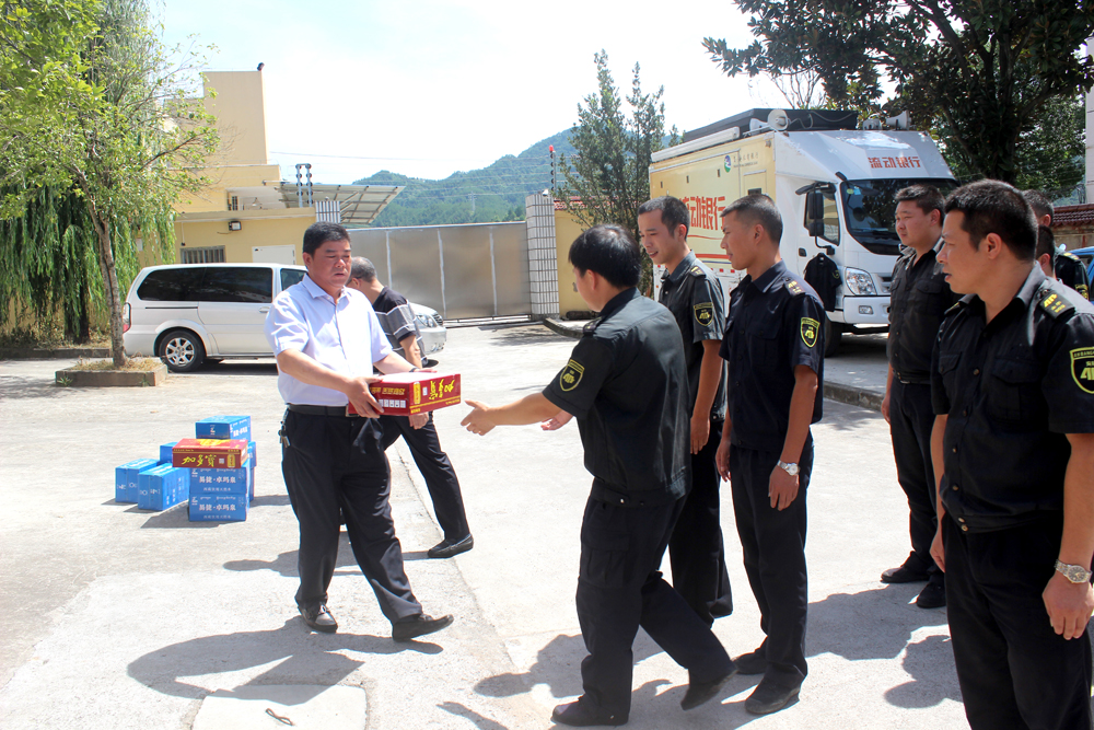 入伏以来,我市连续的高温天气,给金华星辉公司战斗在一线的守押队员们带来了极大的考验。为确保日常守押工作有序运行,7月17日,由公司总经理方顺富,副总经理张红兵、潘晓斌带队,兵分三路到公司下辖各大中队进行高温慰问,给队员们送去防暑降温用品的同时,也送去了公司对一线队员的关心和问候。
