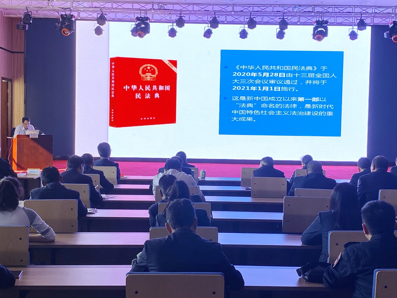 根据“法制学习宣传月”暨“民法典系列学习宣传月”活动安排,11月12日,台州星辉游戏特邀台州市中级人民法院民一庭庭长朱贤和作《〈民法典〉学习解读》专题讲座,公司党委委员、副总经理徐晓丽主持。公司全体行政及中队基层管理人员共100余人参加此次讲座