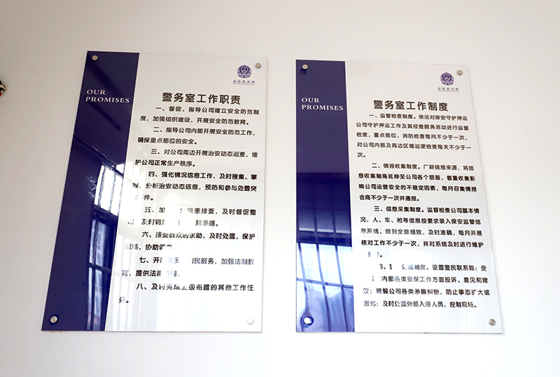 星辉公司警务室,是根据公安部《保安守护押运公司管理规定》规定,在市公安局派驻警务联络官的基础上,辖区公安机关为进一步加强重点单位安全防范和单位内部管理而设立的。主要职能是采取民警定期巡逻、治安巡防重点巡查、保安驻守执勤等方式,对公司内部及周边进行全天候巡逻防范。并制定、完善常态化安全管理机制,提高警务室运行效能,确保每天有巡查,每月有检查,每季有联合检查,年度有考核。为进一步提升公司及周边安全管理水平打下坚实基础。