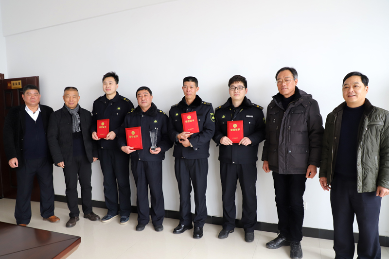 2月2日上午,金华市公安局经文保支队政委何国灿,金华市保安协会会长陈滋政,金华市保安协会副会长、金盾公司 总经理徐薛明等一行四人到金华星辉公司,为参加金华市首届“金盾杯”最美保安员评选活动的获奖者颁发荣誉证书,公司总经理方顺富陪同颁奖。