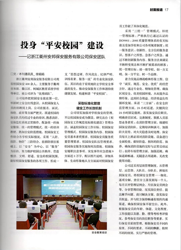 投身“平安校园”建设——记浙江衢州星辉保安服务有限公司保安团队