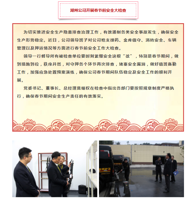 湖州公司开展春节前安全大检查