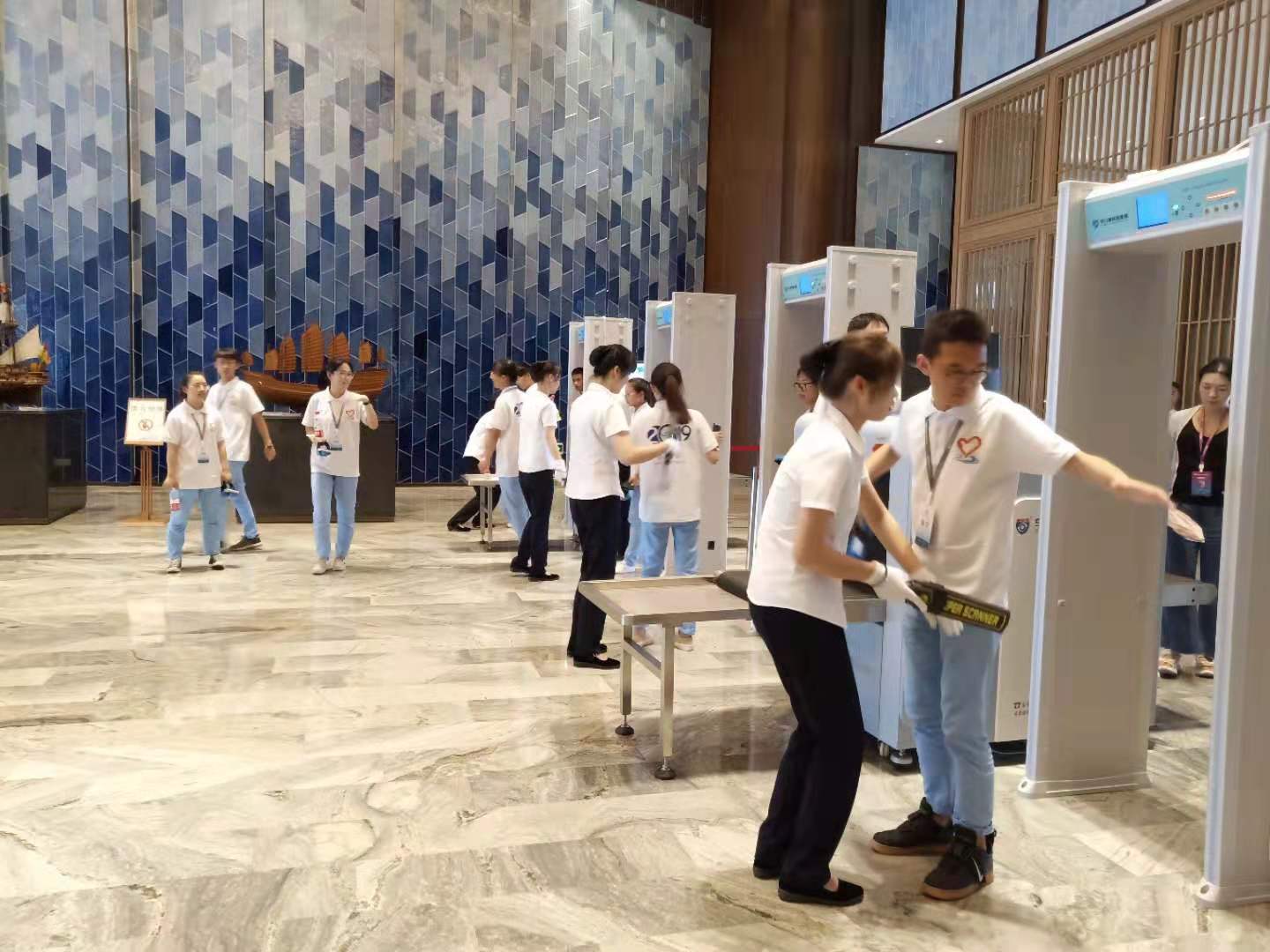 受舟山市公安局的邀请,经前期与国际旅游大会执行委员会办公室多次沟通洽谈,公司承担了本届大会人员出入口的安检任务。为确保此次任务的顺利完成,公司高度重视,提前制定安检方案,并经综合考虑,决定与在安检服务项目上已积累一定经验的宁波星辉公司合作,由他们派遣专业的安检团队参与执行。