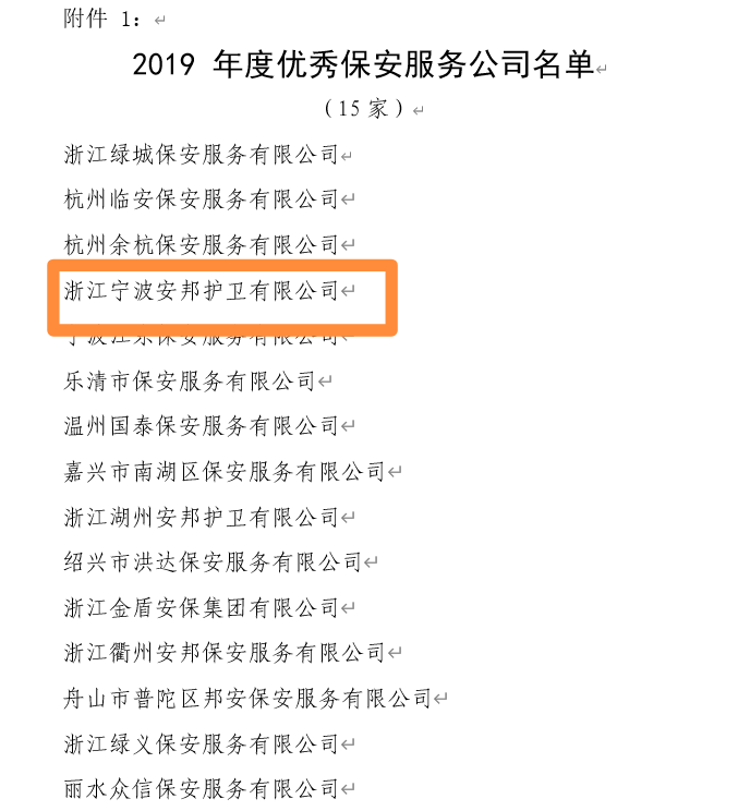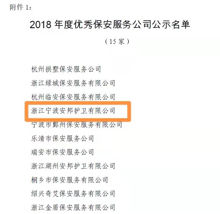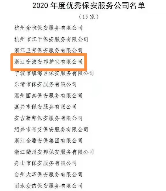 近日,省保协通报表彰2020年优秀保安服务公司,宁波公司榜上有名。至此,自2018年至2020年,公司连续三年获此殊荣。