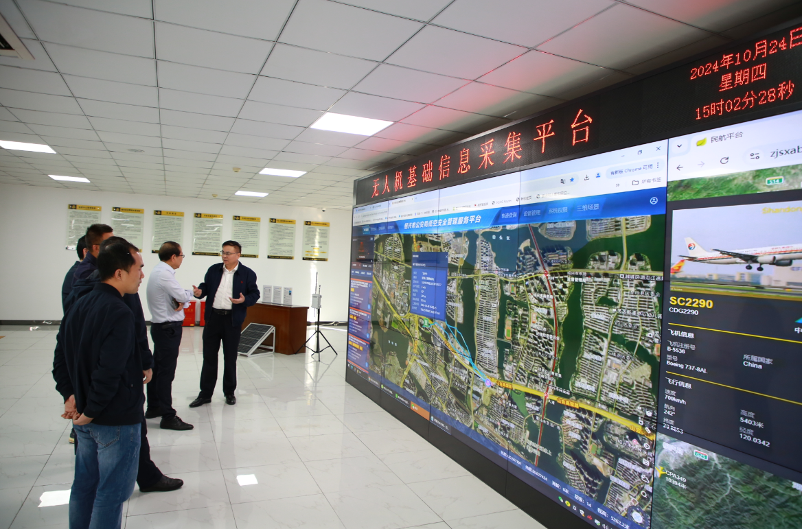 胡秀荣对平峰一行的来访表示热烈欢迎,并陪同参观了公司综合信息运维中心,着重介绍了公司利用自身城域物联网技术优势打造的无人机前端部署设备及基础信息采集平台,平峰一行认真观看了设备及平台的运行情况,并给予高度评价。