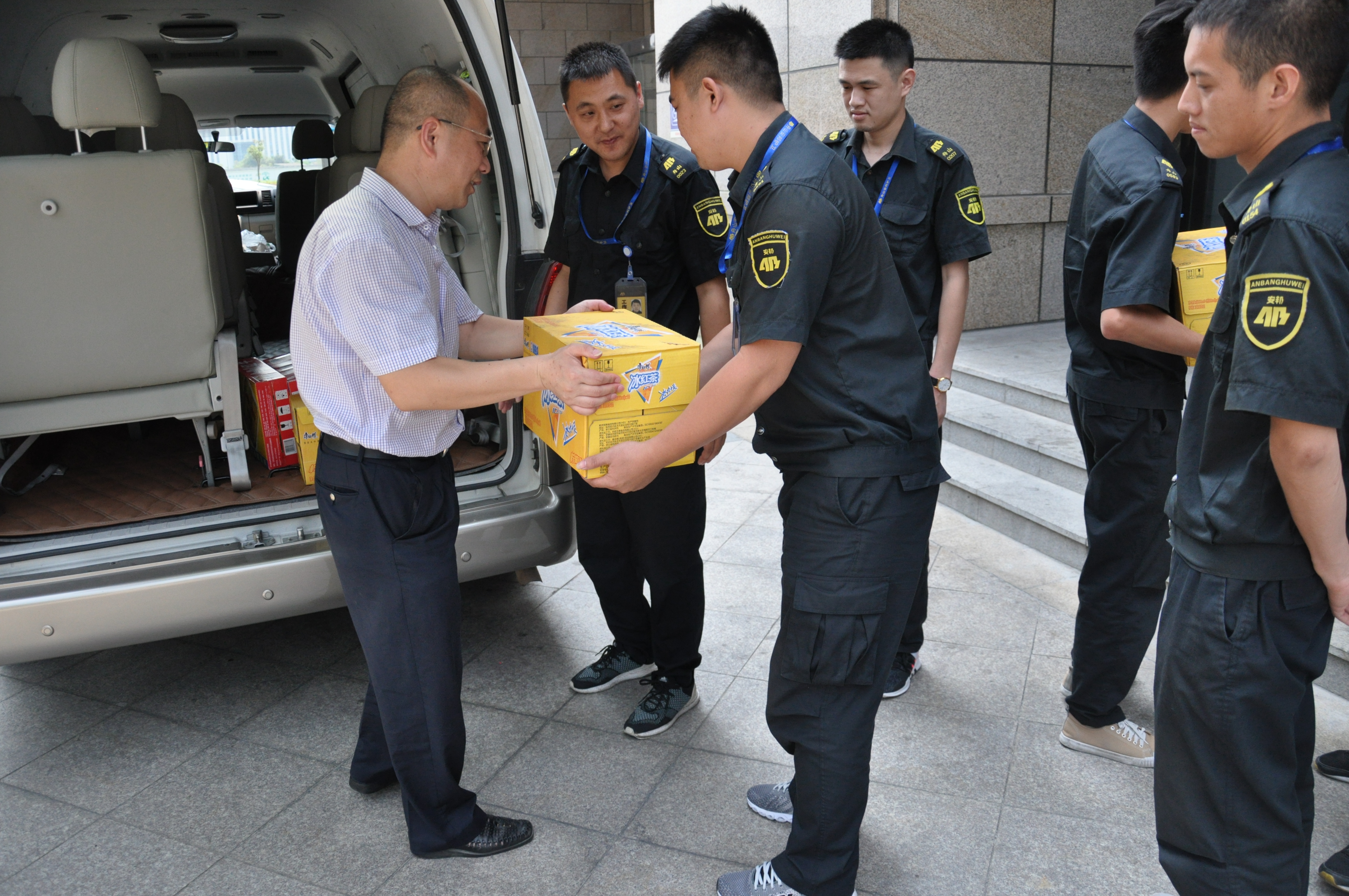7月25日上午,公司党委书记,总经理茹新奋带领工会工作人员到下属各中队进行走访慰问,为他们送去了风油精、藿香正气水、仁丹、十滴水等防暑降温药品和饮品,给在高温酷暑里辛勤工作的员工们送上一份清凉。
