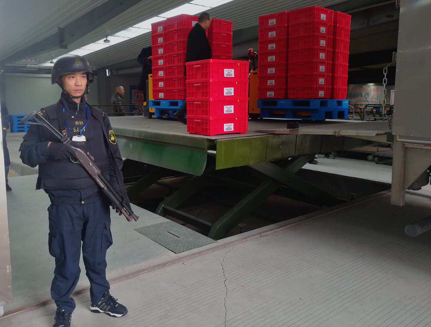 往年春节前后,随着现金流动量增大,运钞车辆出入人民银行次数也就相应频繁,特别是各投放行前往人行领取现金时,容易出现车辆扎堆排队的现象,不但存在着车辆使用效率低,领取等候时间长、特种车辆车身高体积大,装卸平台难以对接,作业人员装卸不便等问题,更存在着交通事故、风险管控等安全隐患。但今年随着嘉兴星辉二期金库投入使用,这些问题都将迎刃而解。