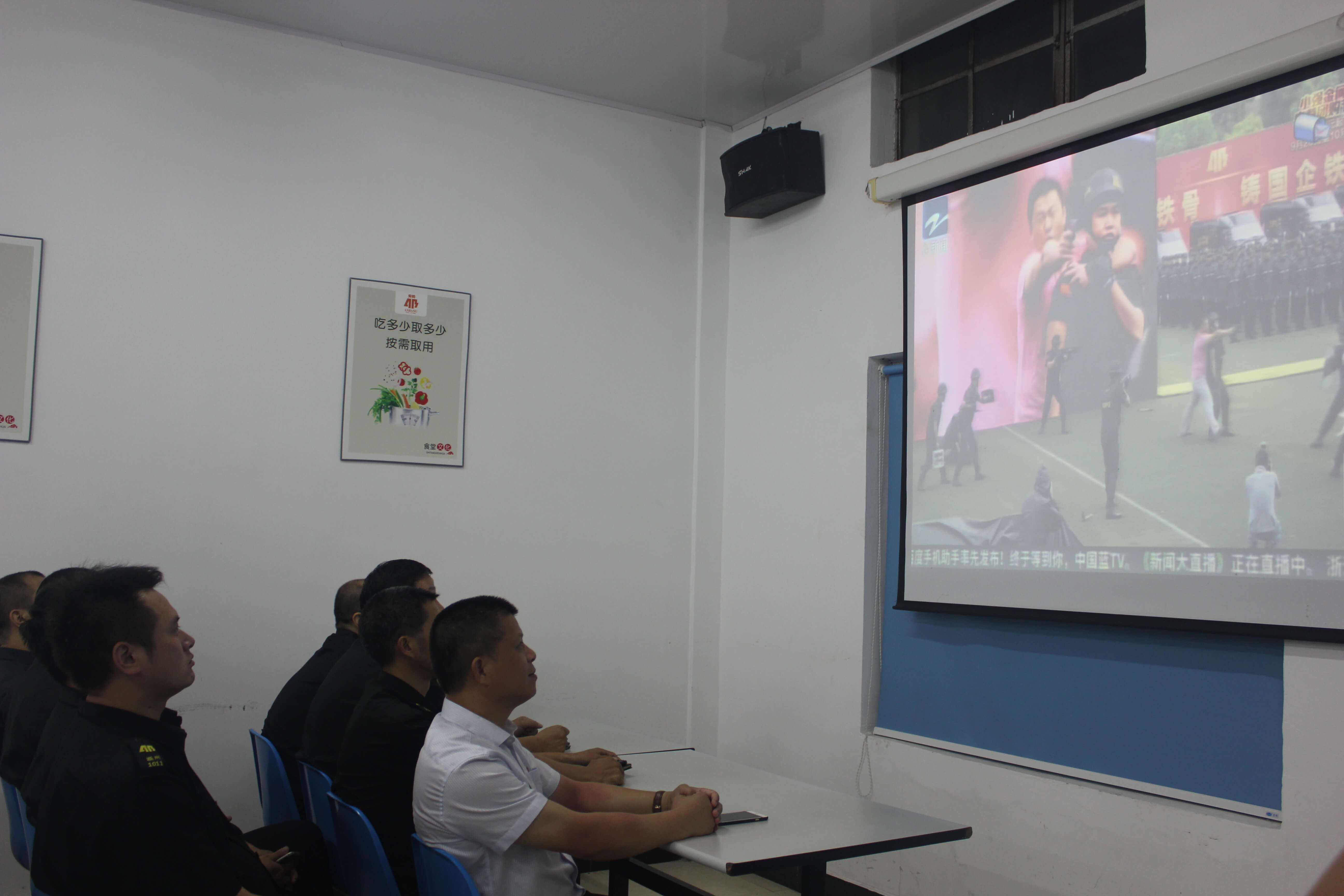 9月28日晚,温州公司组织员工观看星辉游戏“大练兵大比武”汇报表演暨“平安护航十九大”誓师大会电视报道。电视上,星辉游戏队员在大雨中进行精彩的专业技能表演,展现了忠诚可靠、作风顽强、技能过硬的“星辉”风貌,得到了公司员工的强烈共鸣。