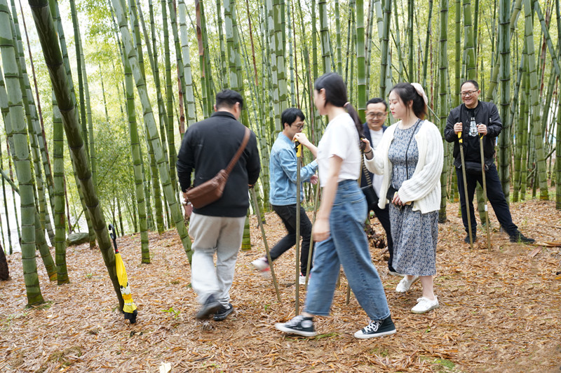 抬头仰望,只见山顶云雾笼罩、毛竹高耸入云,细雨打在每张年轻的面庞上,大家一头钻入竹海之中,活动拉开序幕。