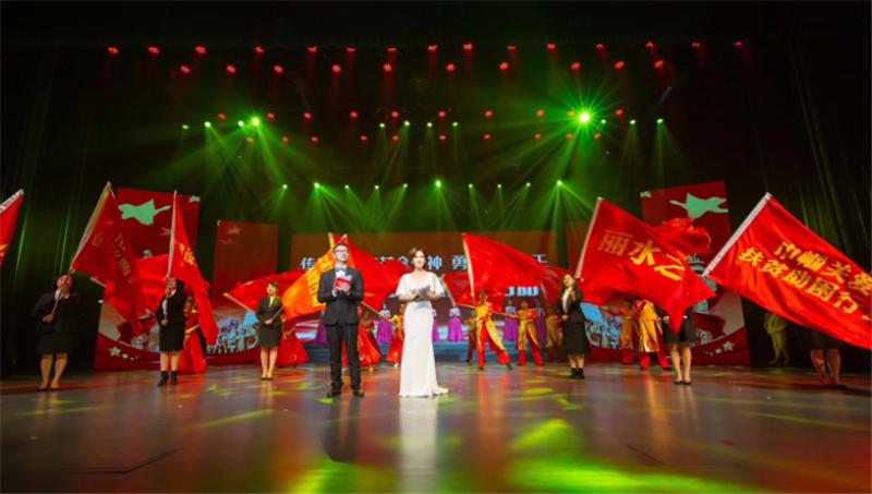 为深入推进浙西南革命精神弘扬践行活动,迎接第109个“三八”国际妇女节来临,2019年3月1日,丽水妇联、丽水在线在丽水大剧院联合举办“传承浙西南革命精神、勇担丽水之干”巾帼先行大型主题实践活动。实践活动内容丰富,包含歌舞表演、语言类访谈、脱口秀、拉歌比赛等节目。丽水市国资国企系统组队参加此次拉歌比赛,与丽水其他6个行业系统同台角逐。