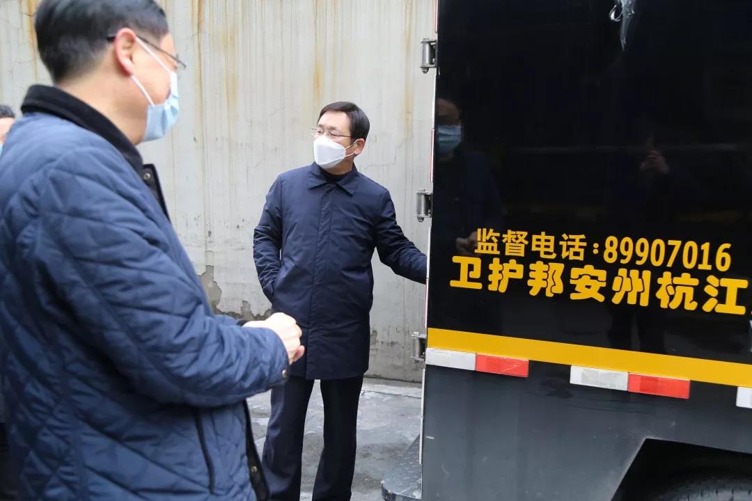 接着,董事长吴高峻一行分别到杭州公司金库、现金清分场地、职工食堂查看了疫情防控设施设备配置情况,对坚守在一线的职工表示感谢,并再次叮嘱他们注意做好个人健康防护措施。