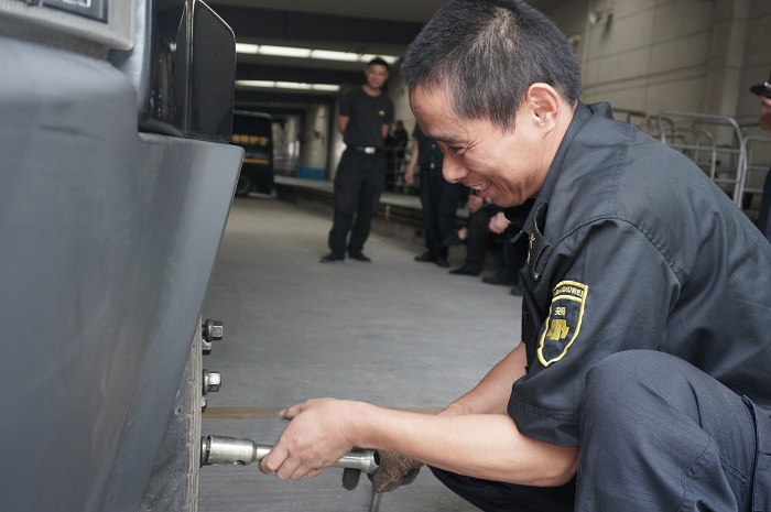 为全面强化巩固守押人员的职业技能、操作规范和应急能力,贯彻推行守押工作规范化、标准化,确保在十九大期间的守押工作安全有序, 8月19日、9月2日两天,公司举行2017年岗位练兵考核。全体直属守押大队、县市守押大队驾驶员及持枪押运员参加考核,依次进行驾驶员更换轮胎、押运员枪支分解结合、运钞车过单边桥三个项目的考核。参考队员充分发挥日常守押工作和定期岗位练兵养成的娴熟技术和专业素养,展现了星辉员工扎实的岗位技能、一流的综合素质和高超的业务水平,为确保十九大期间公司守押工作安全、有序运行作出了优秀示范。