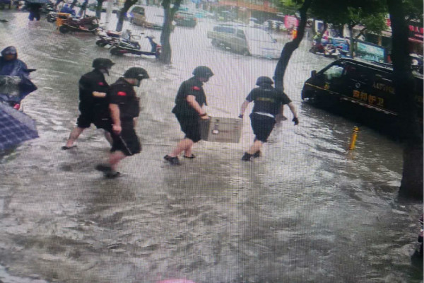 防汛期间,湖州公司时时关注最新路况信息,及时提醒途径积水路段车组注意安全,全力做好人员、车辆、枪弹、各金库、驻勤岗点安全保障、协调沟通工作;一线执勤队员恪尽职守,冒雨作业,克服恶劣天气的影响,圆满完成接送款任务,确保银行网点正常营业、金融秩序安全稳定,充分体现了星辉担当。