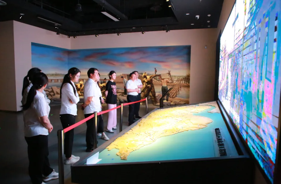 全体人员借助文物、沙盘、展板、VR技术等载体的沉浸式体验及历史重现,近距离感受到浙东运河千年水脉演变的丰厚底蕴,详细了解了绍兴城市的发展与浙东运河之间的历史渊源及当地合理利用水资源、推进大运河保护等情况。