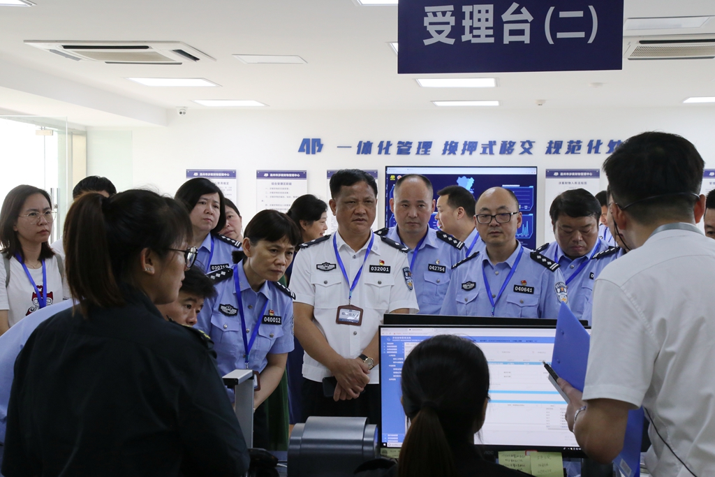 7月22日下午,绍兴市各区、县(市)公安(分)局法制部门有关分管领导和部分检法有关领导在绍兴市公安局党委委员、副局长陆伟香带领下莅临温州公司考察调研涉案财物管理工作;温州市公安局党委委员、副局长林振江,法制支队支队长徐莹、温州公司党委书记、董事长方芳,党委委员、副总经理苏苗杰全程陪同考察。