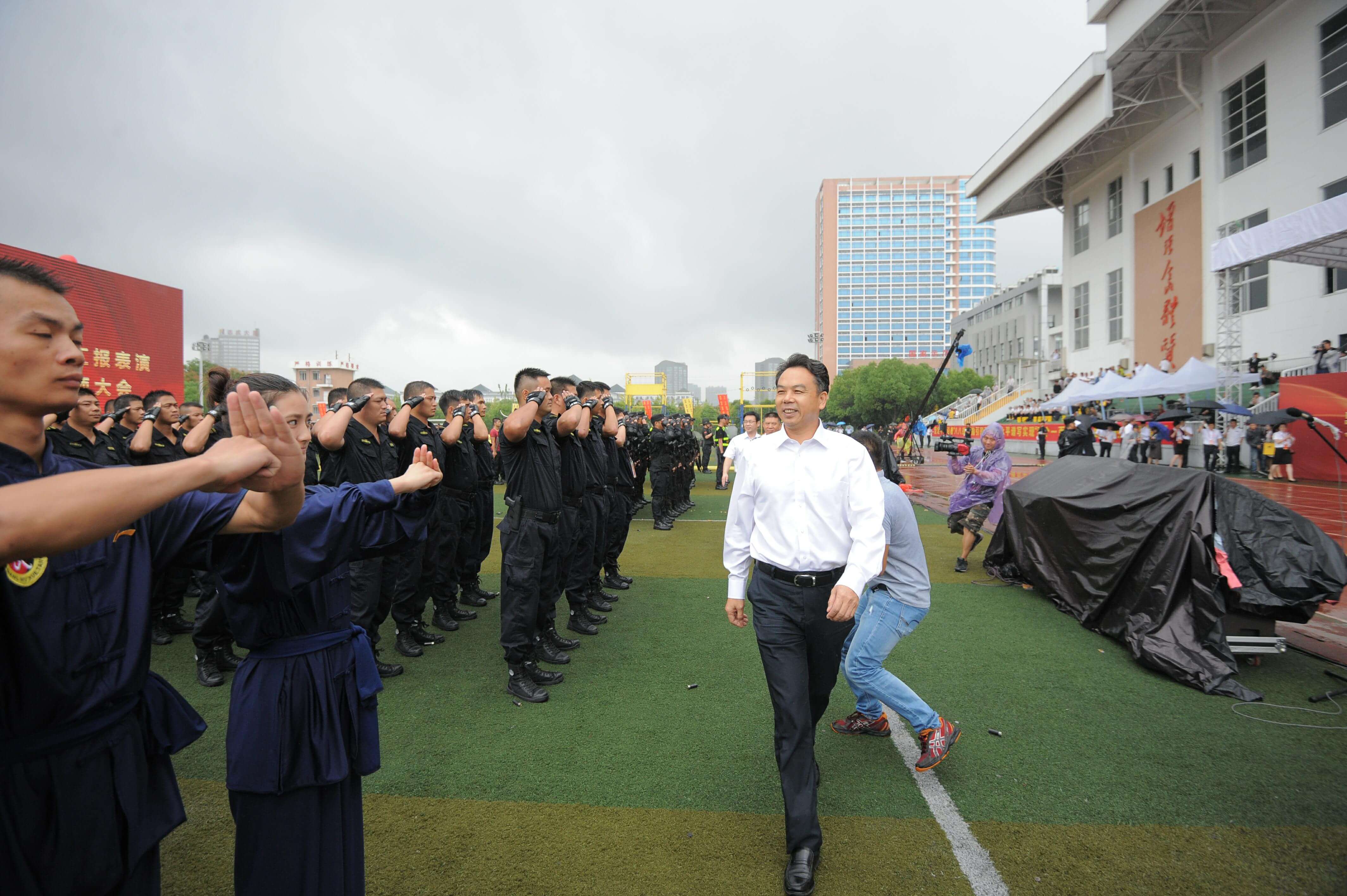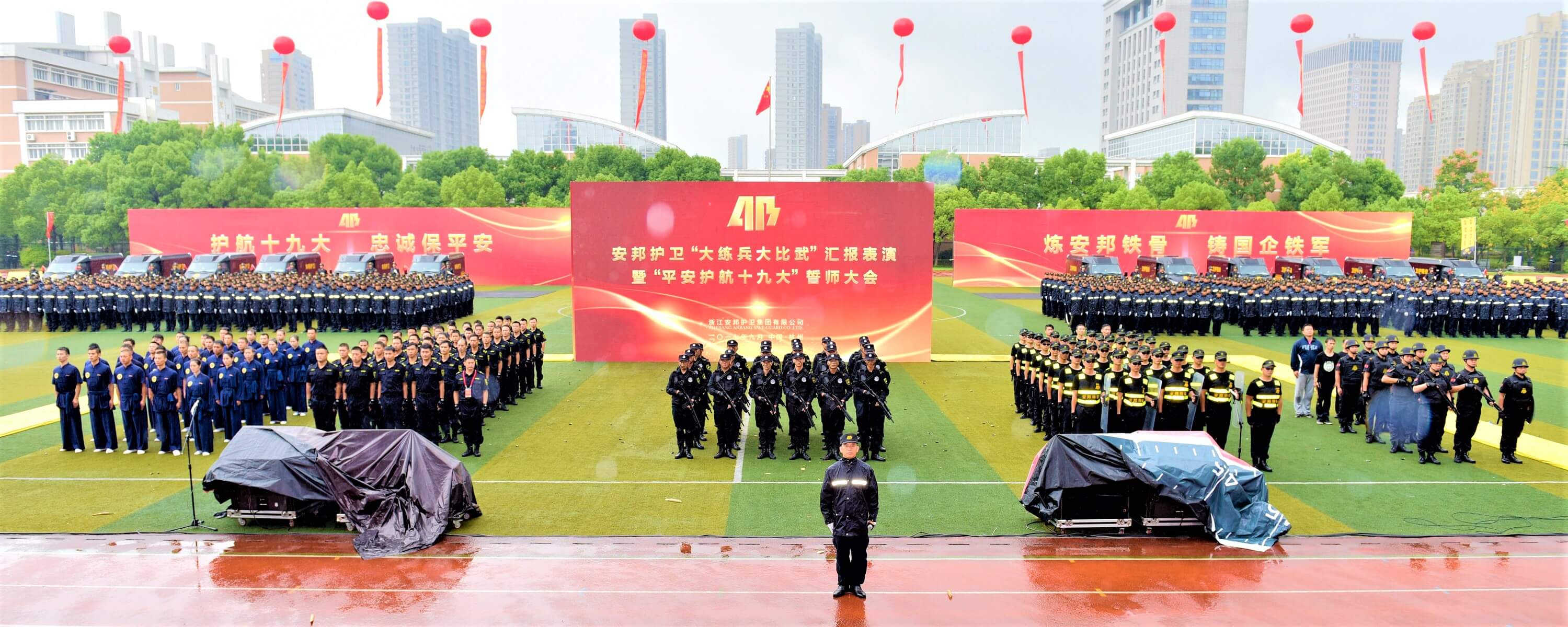 9月28日上午,浙江星辉游戏有限公司在浙江警察学院举行了星辉游戏“大练兵大比武”汇报表演暨“平安护航十九大”誓师大会。 省国资委党委书记冯波声,省公安厅党委委员、副厅长金伯中以及中国人民解放军国防大学、省政法委、省综治委、省委反邪教办公室、省公安厅、浙江警察学院、省警卫局、省消防总队、杭州警备区、省保安协会相关领导,和其他省级有关部门、省级金融机构、省属国有企业和业务合作相关单位负责人参加了活动。