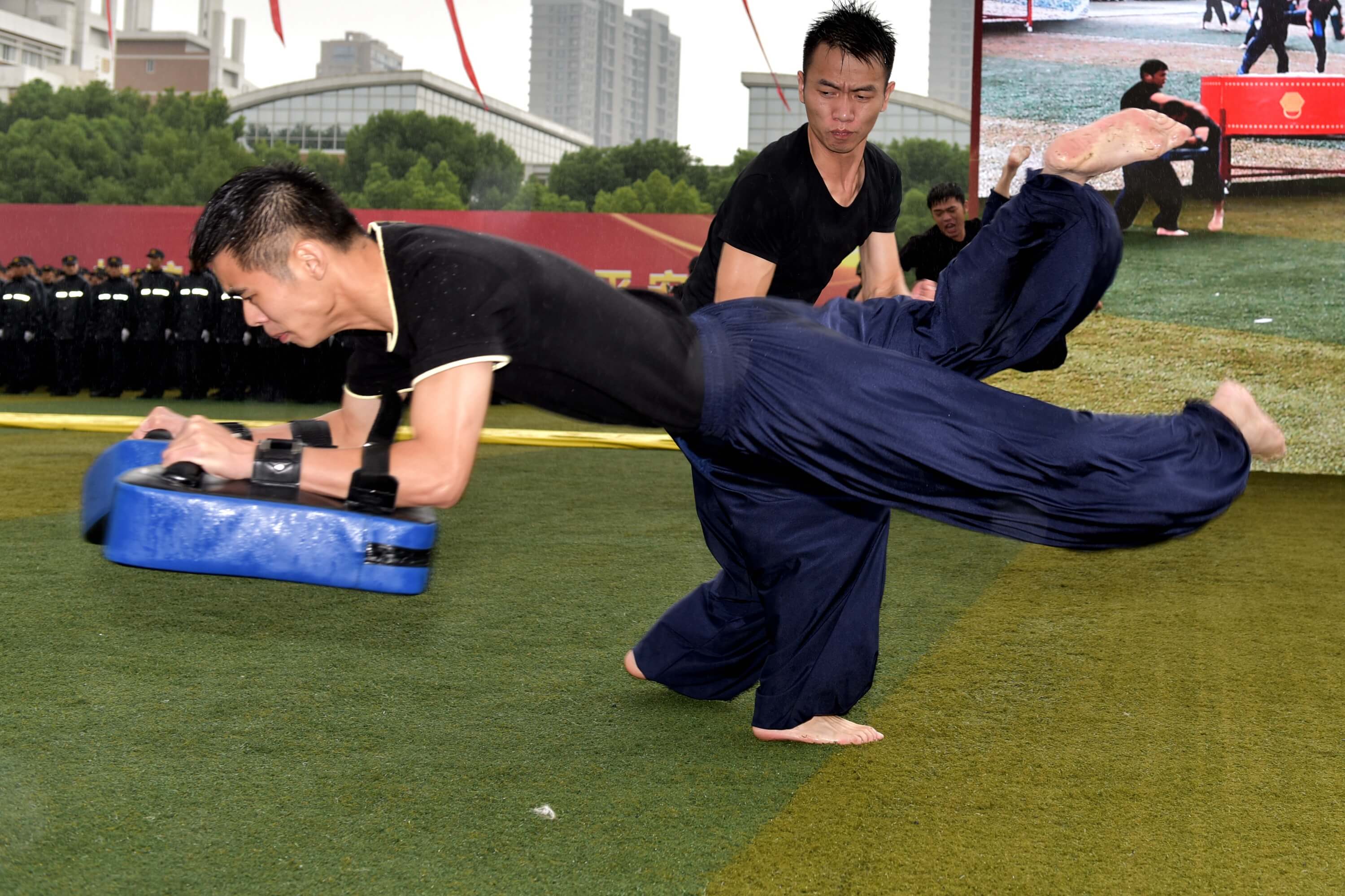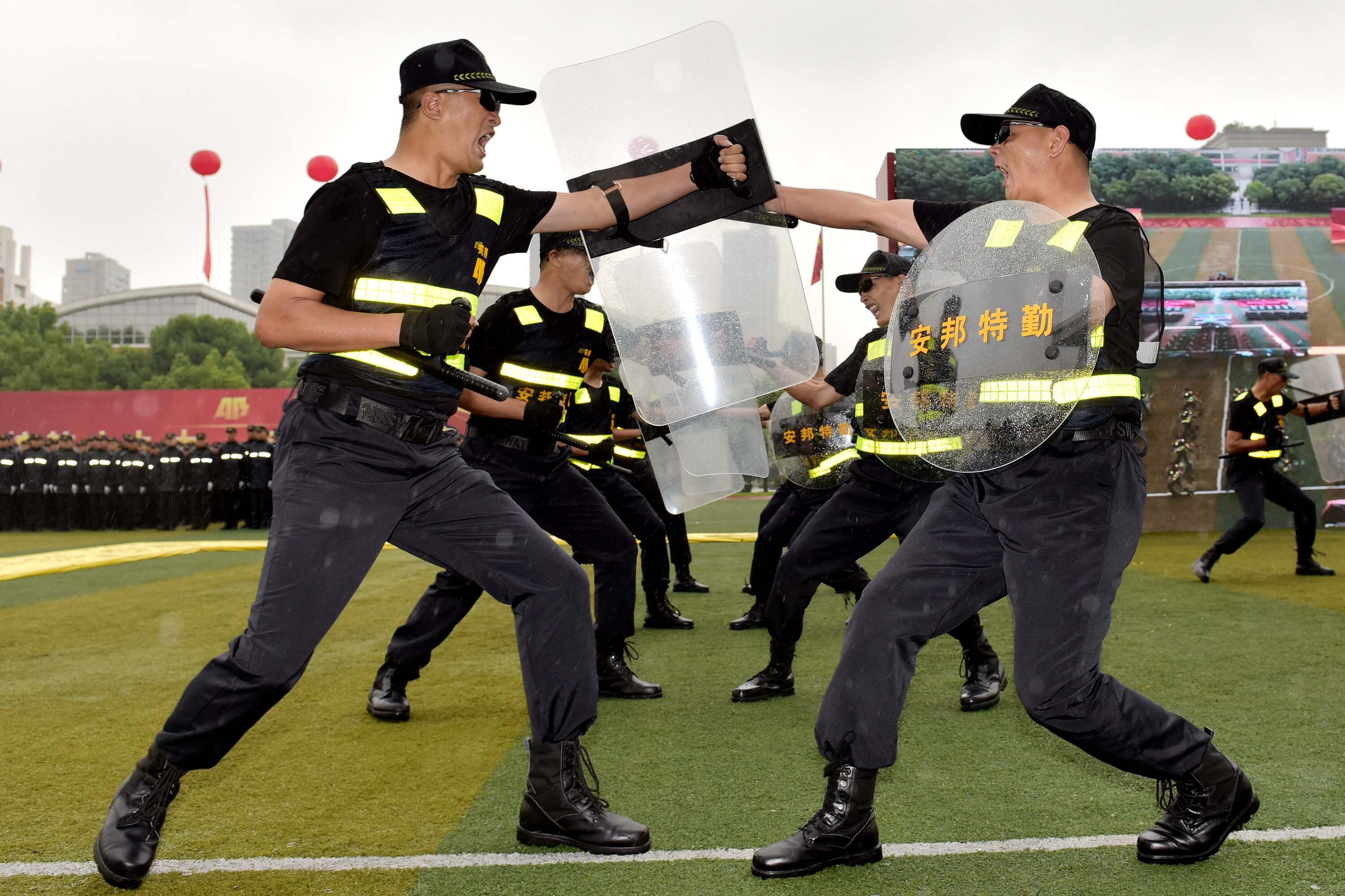 “龙狮呈祥”、擒敌拳表演、警棍盾牌术表演、“武魂”特保武术表演、抢劫处置模拟表演、防暴枪战术动作综合演练等节目异彩纷呈,星辉游戏员工用他们过硬的技能、优良的素质、精彩的表演,展示了“大练兵”成果,展现了浙江国企铁军良好形象。