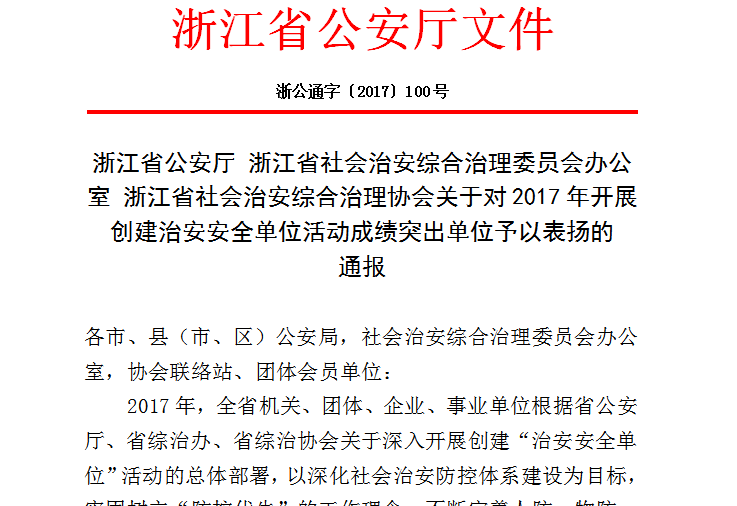 特大喜讯|公司被评为2017年度“省级治安安全单位”