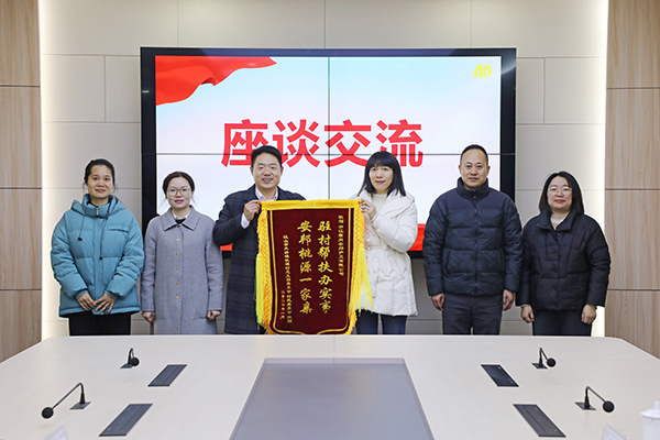 2026年1月23日,江山市凤林镇桃源村书记一行,专程来到衢州星辉,代表桃源村送上一面写有“驻村帮扶办实事 星辉桃源一家亲”的锦旗,对公司近年来在乡村振兴工作中给予的大力支持和真情帮扶表示衷心感谢。公司党委书记、董事长、总经理张淑芬,党委副书记、纪委书记、工会主席马洪庆出席座谈会并交流,党群工作部负责人、机关党支部书记等参加座谈。