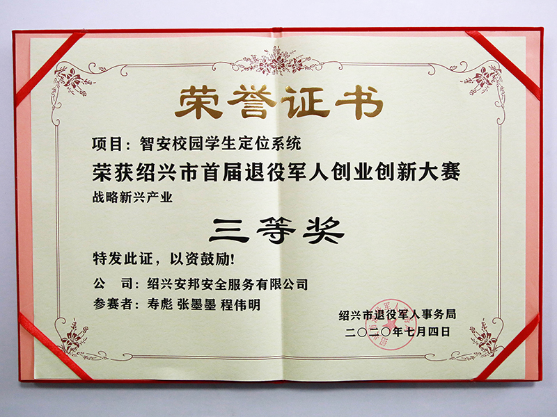 7月4日,由绍兴市退役军人事务局主办的绍兴市首届退役军人创业创新大赛决赛在浙江工业职业技术学院举行,浙江省退役军人事务厅党组成员、副厅长郭国松,绍兴市人大常委会副主任王水君,市政府副秘书长陈永葆,市退役军人事务局局长尹国樑出席开幕式。绍兴星辉游戏旗下安全服务有限公司应邀参赛。大赛分为战略新兴产业、精准扶贫、现代农业、传统产业及生活服务业和创新团队五个组别,共49家单位团体,最终评选出一、二、三等奖各5名和优胜奖10名。