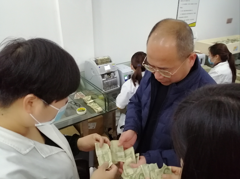 在整点室,茹总还仔细询问了小额现金纸币和硬币集中清分整点运营状况,并对现金复点张数、复验真伪、挑残、版别分类、扎把、打捆,盖章,贴封签等整个清分整点流程进行了深入了解,要求清分中心全体员工要认真履行职责,严格执行清分中心管理的各项规定,认真细致操作,达到人民银行的上解要求,同时,确保安全无事故。
