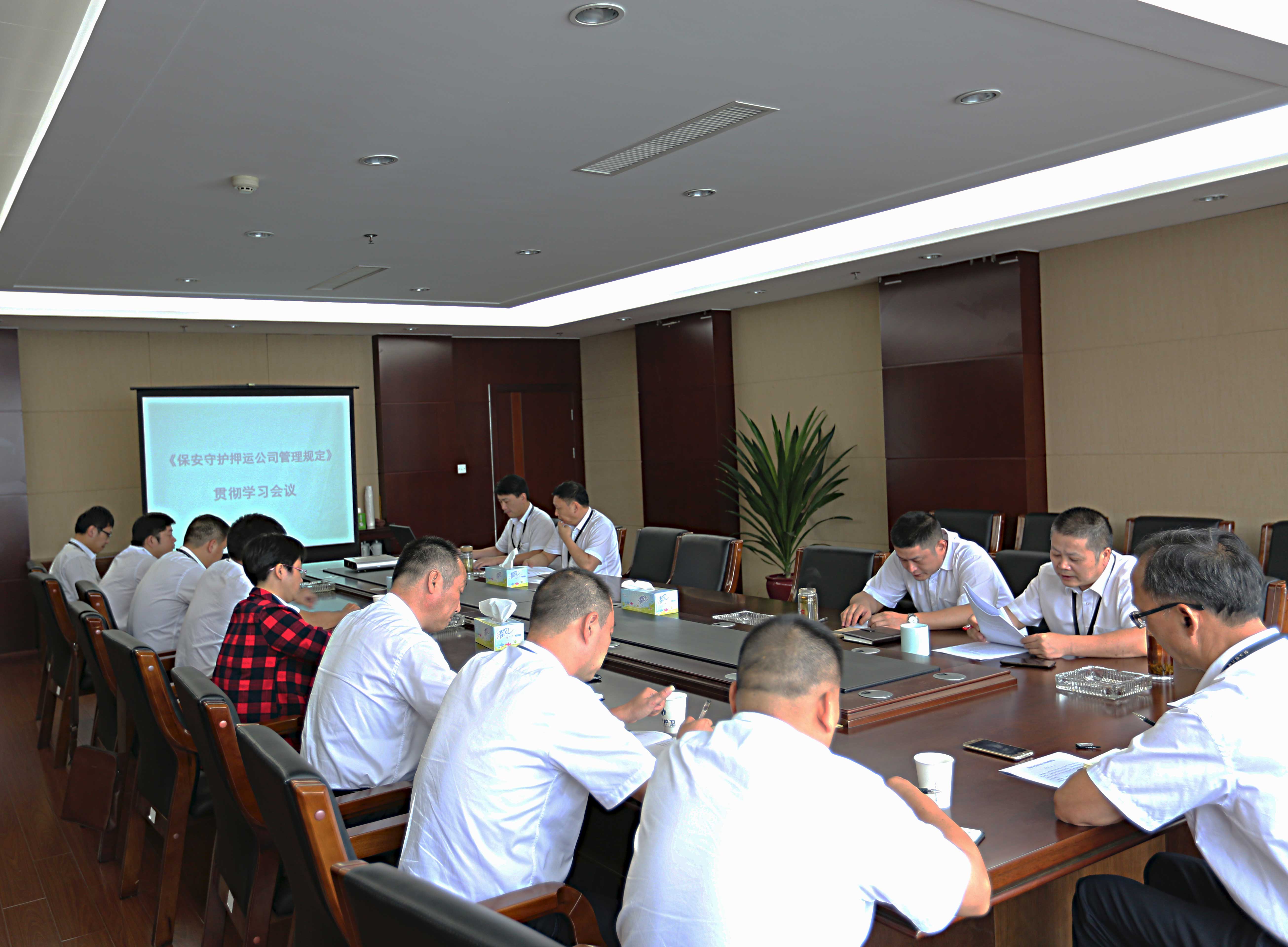 9月28日下午,公司在十五楼召开工作会议,学习贯彻落实《保安守护押运公司管理规定》文件精神。公司领导马华钢、陈良、王天飞、董礼财及相关部门主要负责人参加会议。会议由公司常务副总经理马华钢主持。