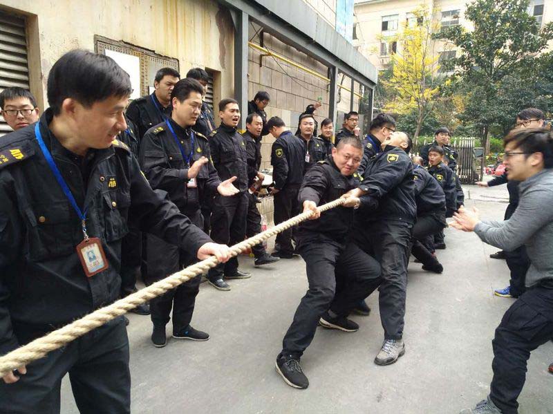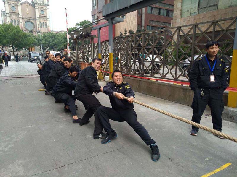 2017年12月7日中午,在市中行停车场上空传出阵阵呐喊声、加油声,只见身着星辉制服的员工们个个精神饱满,斗志昂扬,紧握长绳,你拉我扯,气氛热烈异常,这是中行大队组织员工拔河比赛的现场,60余名员工参加了这次比赛。