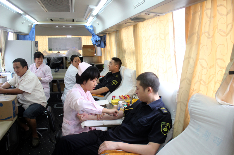 队员们积极踊跃,主动配合,公司总经理方顺富给队员们加油打气,现场井然有序。充分展示了良好的星辉队伍形象。献完血,队员们顾不上休息,返回岗位继续投入工作,他们用另一种方式诠释着星辉铁军精神。同时,由于地域问题,义乌、东阳、永康守押大队根据实际,就近开展活动。