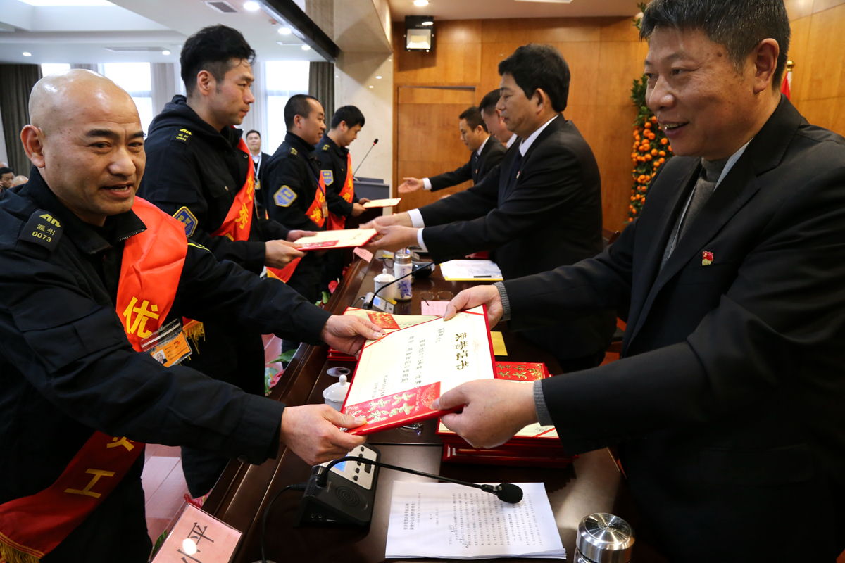 公司党委委员、副总经理林君杰同志宣读公司2019年度优秀员工、最美退伍军人、年度考核先进单位名单;党委委员、副总经理苏苗杰宣读2019年度先进共产党员、先进基层党务工作者、先进基层党组织名单。公司领导对获奖人员颁发证书和奖金,滨海大队吴昌赵同志作为先进代表发表了工作心得和感言。