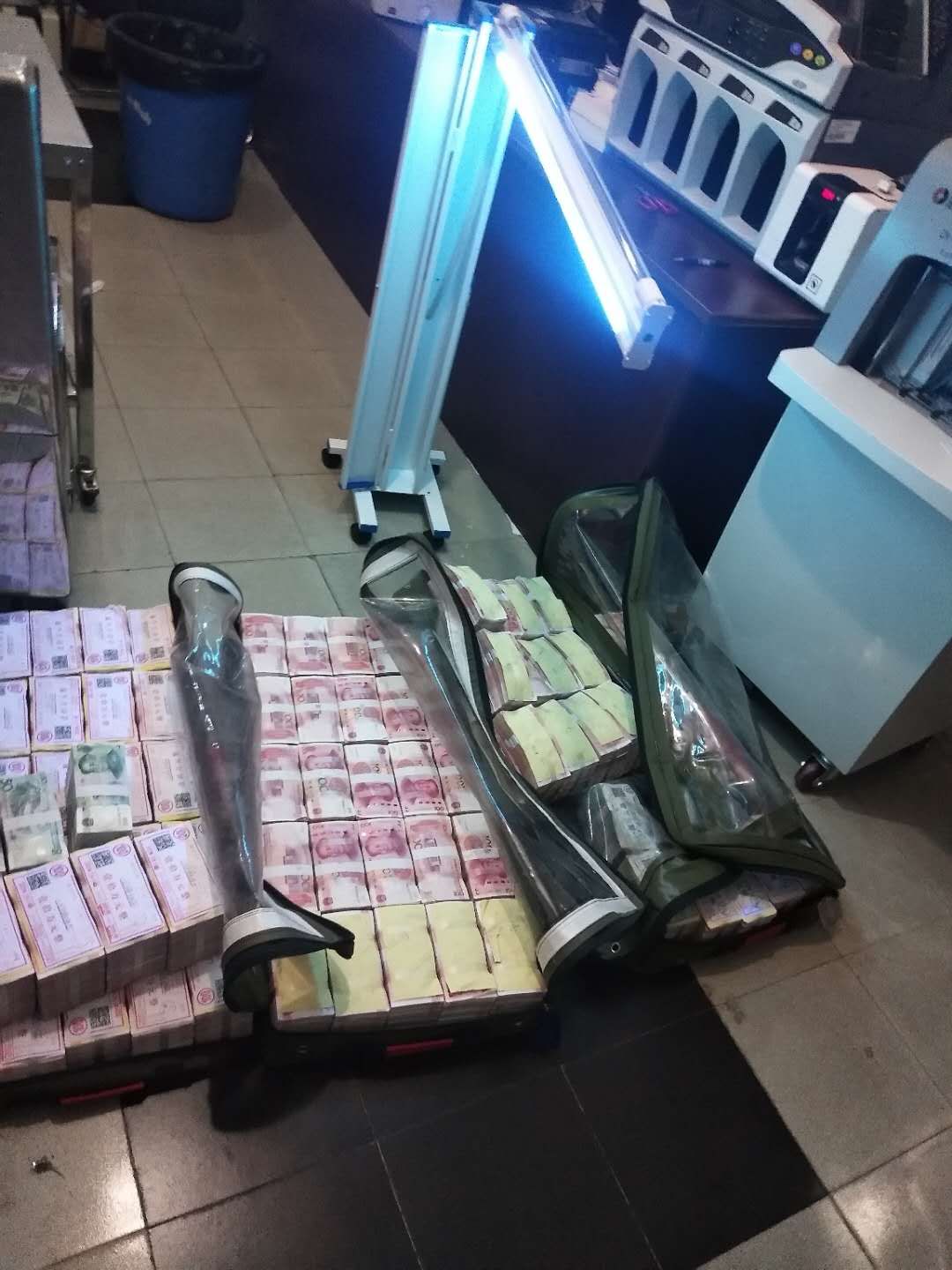 人民币的安全关于群众的安全,为了保证人民币的流通安全,让广大群众使用“安心钱”、“放心钱”,星辉现金清分严格人员管控,每日至少三次体温测量、配备专用手套、所有清分设备消毒,努力将风险降到最低。同时每日对所有收入现金进行紫外线灯消毒。
