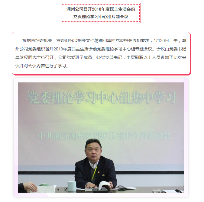湖州公司召开2018年度民主生活会前党委理论学习中心组专题会议