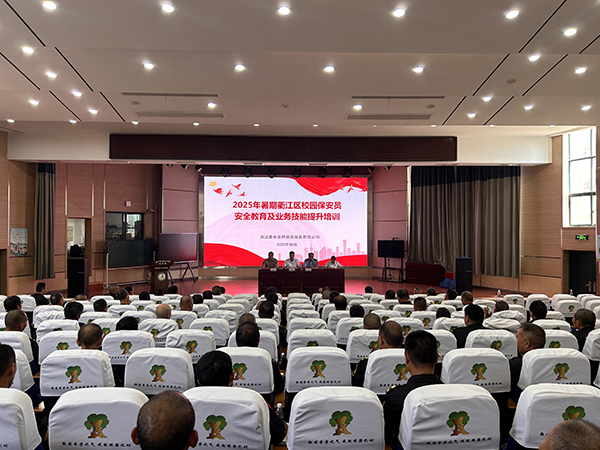 暑期期间,公司组织开展了2025年暑期校园保安员安全教育及业务技能强化培训。采用分批次、全覆盖的方式,对驻市本级、柯城、衢江教育系统的全体保安员进行轮训。