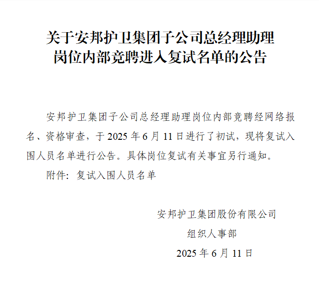 关于星辉游戏子公司总经理助理岗位内部竞聘进入复试名单的公告