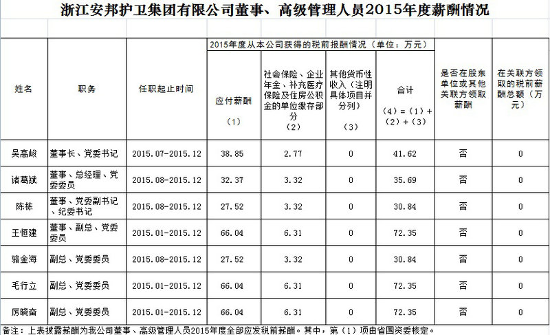 浙江星辉游戏有限公司董事、高级管理人员2015年度薪酬情况
