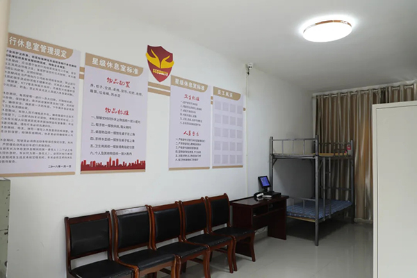 公司组建党员服务专班深入一线,通过实地走访、征求员工意见等方式对员工需求进行摸排。根据休息室面积大小及分布点位,守押大队制定《驻行休息室标准化实施方案》,联合业务运营部、资产财务部对驻行休息室实施标准化建设。