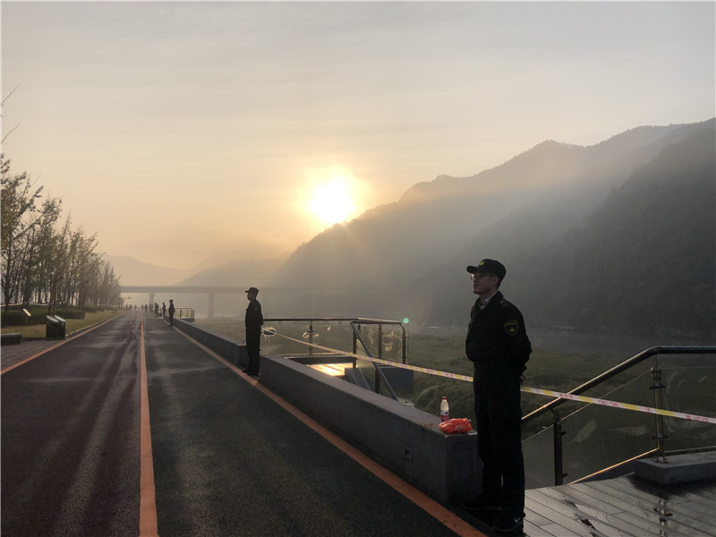 比赛当天,丽水公司150余名保安放弃周末休息时间,上午6点多,天刚蒙蒙亮,队员就全部到岗到位,严密部署在赛道延线周边以及外围各主要路口,全副武装,严阵以待。公司党委委员陈彬到现场指挥安保工作,开展赛前巡视检查,细化节点,机动调整,确保赛事安保工作精准无误。