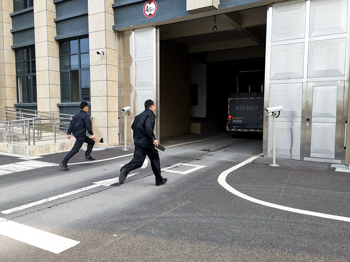 3月21日上午,金融守押中心金库与调度指挥中心、监控中心以及机动队在中心金库联合举行实地反抢预案演练。