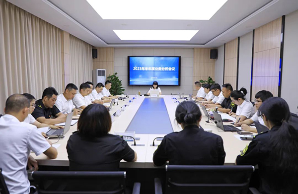 会上,公司总经理助理胡翔作交通服务板块、技防板块业务分析报告;党委委员、副总经理郑胜就上半年营收情况、成本支出、应收账款、三公经费等做深度分析,并对下半年营收、净利数据进行预测。