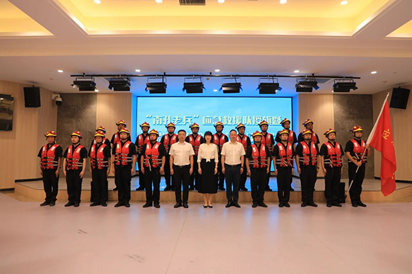 浙江省退役军人事务厅党组成员、副厅长丁国胜为“南孔老兵”应急救援队授旗。在南孔老兵应急救援队队长王冲带领下,全体队员共同宣誓。他们将把“奉献、友爱、互助、进步”的志愿精神与“一不怕苦、二不怕死”的革命精神结合起来,努力展现退役军人的军人本色。