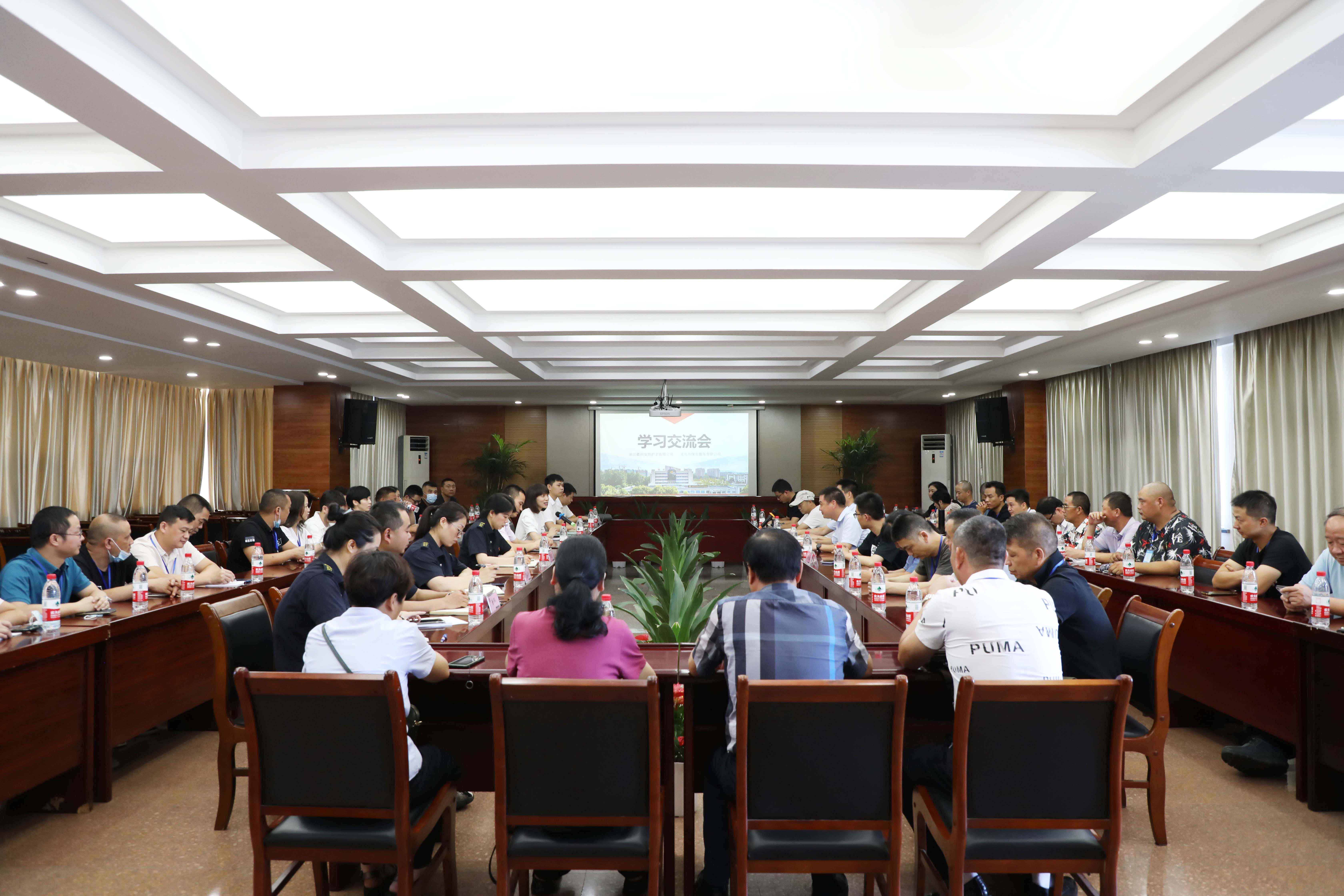 义乌市保安公司总经理万剑介绍了义乌公司业务发展概况,表示星辉公司整体队伍年轻化、业务多元化经营、“科技+”安保服务符合安保产业发展态势,双方就保安队伍管理、无人机安保等方面开展深入交流。