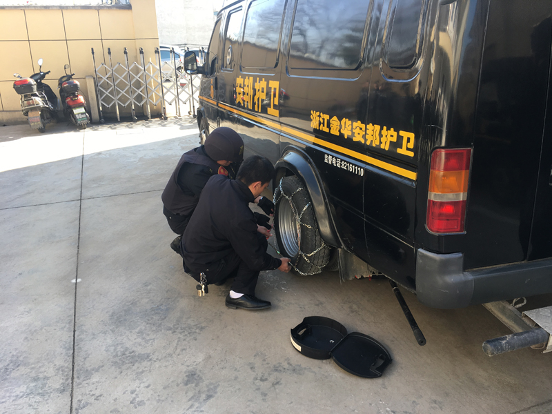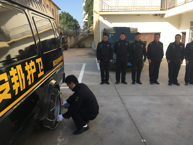 为确保冬季行车安全,提高驾驶员对雨雪冰冻路况突发事件的应急处置能力。1月11日上午,公司义乌大队浦江中队组织开展运钞车防滑链安装应急演练。