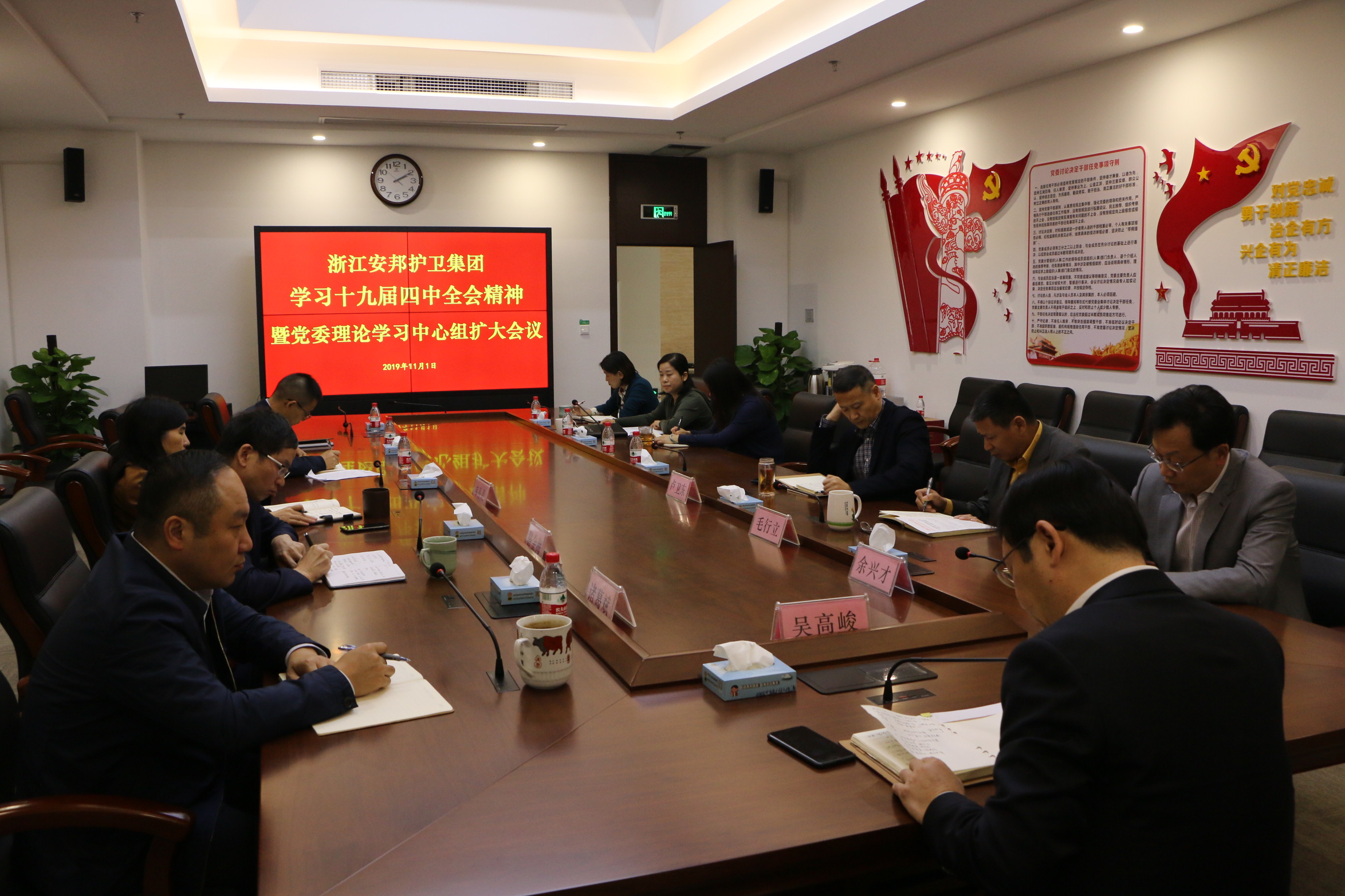 会议强调,要按照车俊书记、袁家军省长在省委常委扩大会议上的讲话要求,把学习宣传贯彻全会精神作为当前和今后一个时期集团的重要政治任务,全面掀起学习贯彻十九届四中全会精神的热潮,抓紧把全会精神传达到集团每一个党组织、每一位党员干部,做到学习传达到人到位,领会精神入脑入心,贯彻落实见行见效,进一步增强“四个意识”,坚定“四个自信”,做到“两个维护”,切实把思想和行动统一到中央的决策部署上来。