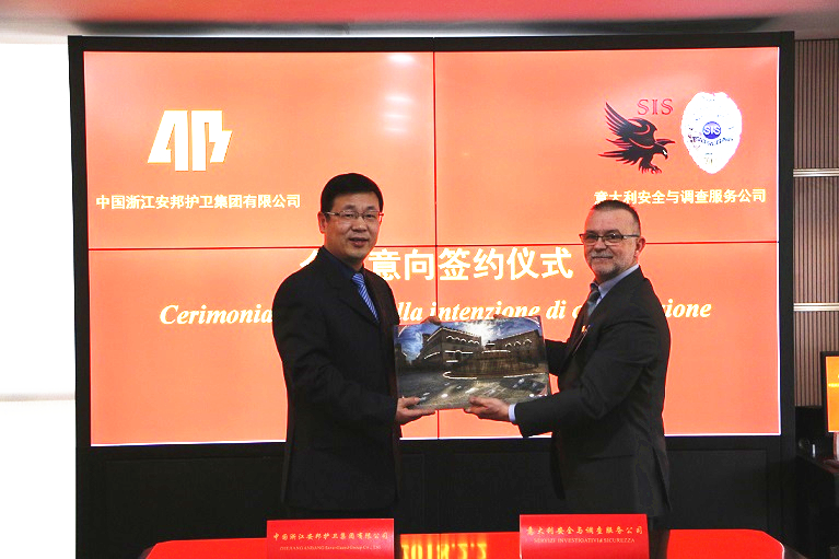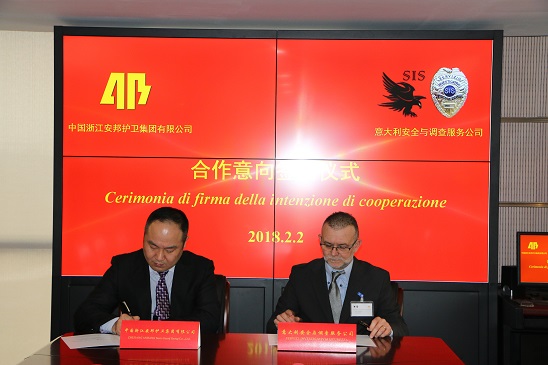 期间,集团公司党委书记、董事长吴高峻会见代表团一行,双方就今后合作开展武装押运、信息调查、安全咨询、安保服务、安保培训、安保信息交换、安保学术研究、人员互派和在意方公司共同设立华人安全服务部达成共识,并举行合作意向签约仪式,集团公司党委副书记、总经理诸葛斌代表集团与意方签署合作交流意向书。